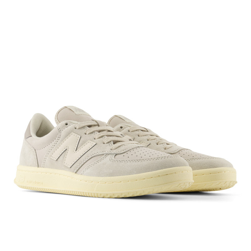 Lanzadas originalmente en 1982, las T500 fueron diseñadas para ofrecer calidad superior a un estilo versátil en la cancha. Si bien las nuevas T500 están diseñadas más para el ocio que para competir, las T500 se convirtieron en unas excelentes zapatillas de tenis en aquel entonces y ahora son un clásico atemporal. El empeine tiene una construcción de ante y nobuck de piel de cerdo y detalles en la puntera perforada, para una versión premium del estilo familiar. Una entresuela de goma con un toque discreto de tecnología de los años 80, destaca de las suelas vulcanizadas de los modelos de cancha más antiguos.