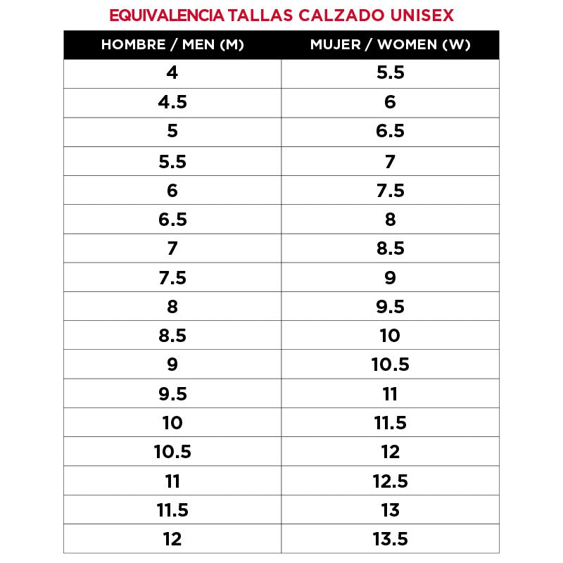 | US Hombre | US Mujer | UK | EU | Largo (cm) |