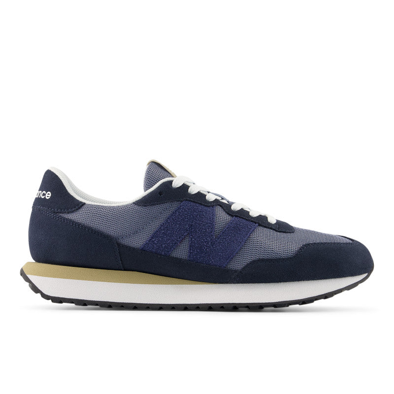 Las zapatillas de running de la década de 1970 podrían describirse como aparentemente sencillas. Aunque carecían de la tecnología visible y el diseño agresivo de años posteriores, las innovaciones de los años 70 sentaron las bases del rendimiento moderno. El modelo 237 es una reinterpretación contemporánea de la herencia del running de los años 70 que fusiona una serie de inspiraciones de diseño tradicionales en una silueta contemporánea aparentemente sencilla y excepcionalmente versátil. La entresuela de EVA, la suela con dibujo en espiga y la parte superior aerodinámica ofrecen un punto de partida clásico para detalles modernos como la marca N de gran tamaño, la entresuela alargada y el ribete y el guardabarros inspirados en los cocodrilos. Se podría decir que la cohesión entre la sensación familiar del modelo 237 y sus exageradas actualizaciones es la forma más sencilla de dejar huella.