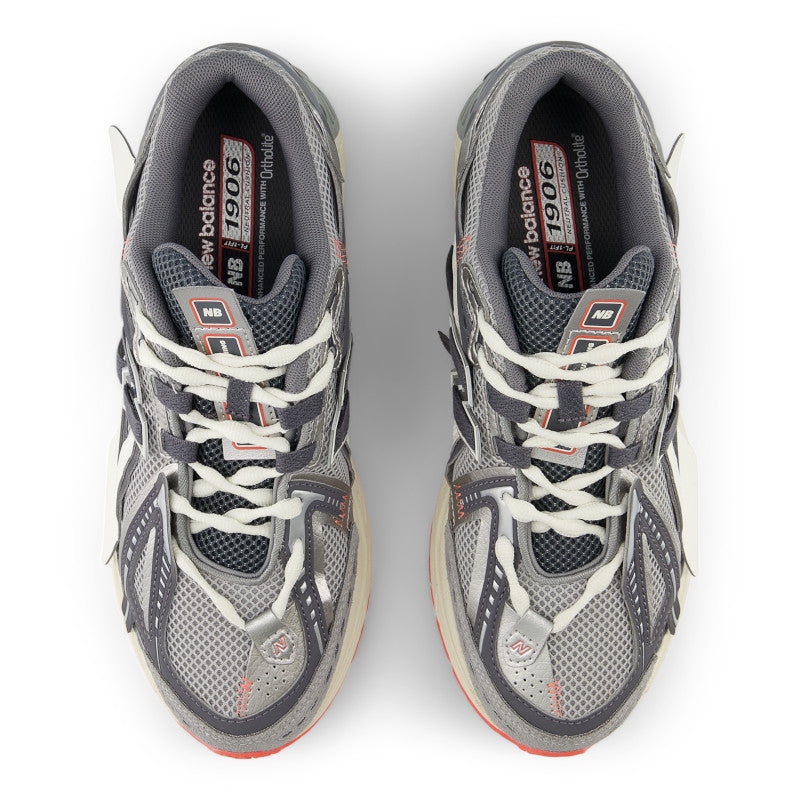 Al igual que sus compañeras, la 2002R y la 860v2, la 1906A presenta una unidad de suela con una combinación de amortiguación ACTEVA LITE flexible, absorción de impactos de N-ergy y almohadillas ABZORB SBS segmentadas en el talón. Este enfoque de vanguardia también se refleja en el empeine de la 1906A, que presenta una malla con orificios abiertos y una serie de superposiciones sintéticas curvilíneas. Este modelo, que se distingue de las convenciones de diseño de la época, ofrece una ejecución estilizada de la alta respuesta tradicional.