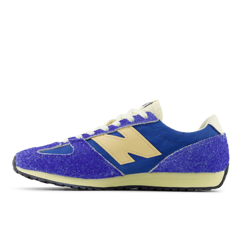 La 471 transforma la tradición de running de los 70 en un nuevo diseño de diario, con una reinterpretación de la gráfica distintiva de la época. Su estilizada entresuela de EVA de perfil bajo con forma de cuña y su suela de espiga ofrecen un punto de inicio familiar que permite otorgar protagonismo a los sofisticados materiales escogidos. El empeine de malla transpirable y las capas superiores de ante suave ofrecen un look desenfadado y desgastado, mientras que el diseño de la puntera es un toque visual único de New Balance que distingue a la 471 del resto.